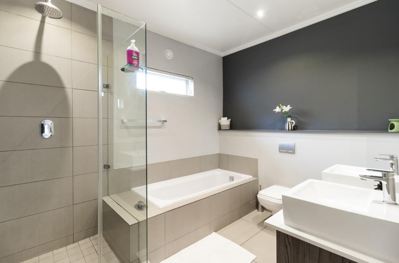 Located in a well-run, secure estate, the 106m² layout includes open-plan living, an entertainer’s patio with a built-in pizza oven, and a neat, private garden – maintained weekly by the estate’s garden service at no additional cost.